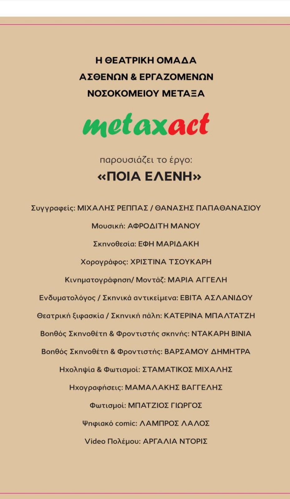 «metaxact» του Αντικαρκινικού Νοσοκομείου Πειραιά ΜΕΤΑΞΑ, με συμμετοχή ασθενών, εργαζομένων και εθελοντών.